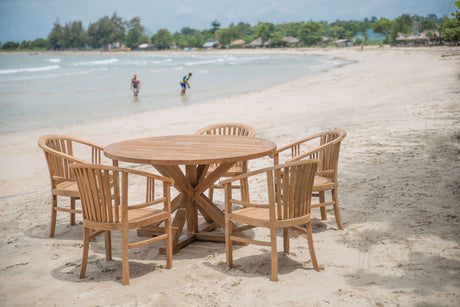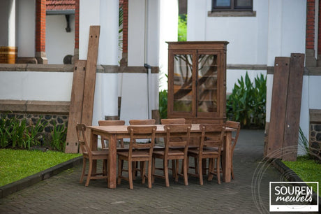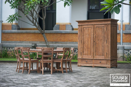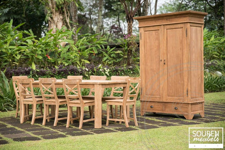 Möbelstücke aus massivem Teakholz überzeugen mit ihrer rustikalen Ausstrahlung und ihrem hochwertigen Erscheinungsbild. Ein in Material und Design perfekt abgestimmtes Sitzensemble wirkt besonders stilvoll und elegant. Die Indoor Sets aus massivem Teakholz bestehen aus ausgesuchten Tischen, Stühlen, Bänken und Schränken, die in Stil und Design hervorragend miteinander harmonisieren. Die klassische Linienführung findet sich in allen Bestandteilen des Ensembles wieder und die warme Färbung des tropischen Edelholzes unterstreicht die charaktervolle Ausstrahlung Indoor Sets.