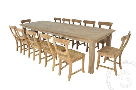 Auf LagerNormaler Preis € 3.190GrundpreisNicht verfügbarTeak Tisch Dingklik 300x100cm + 10 Stühle