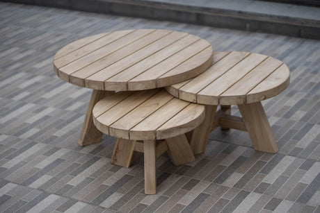 Einen stilvollen Eindruck auf der heimischen Terrasse oder im Gastro Bereich hinterlässt ein Gartentisch mit runder Tischplatte. Die Platte besteht aus einzelnen Teakholzleisten, die von einem kreisrunden Rahmen umschlossen werden. Ein aufmerksamkeitsstarkes Detail ist der Tischsockel, der aus gekreuzten Massivholzbohlen besteht. Wir führen runde Gartentische mit einem Durchmesser von 100 cm, 120 cm, 140 cm und 160 cm im Sortiment. Mit diesen Outdoor-Tischen lassen sich individuelle Wohnideen für den Garten spielend leicht in die Tat umsetzen.