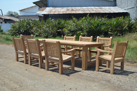 Teakholz Gartentisch 300 x 100 + 10 Gartenstühle Stacking