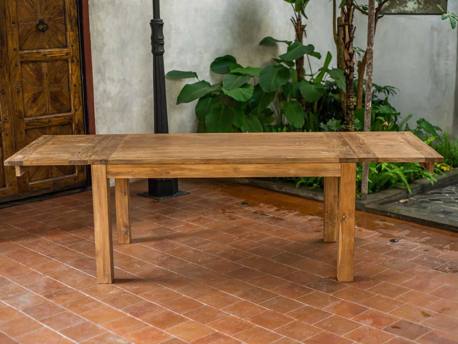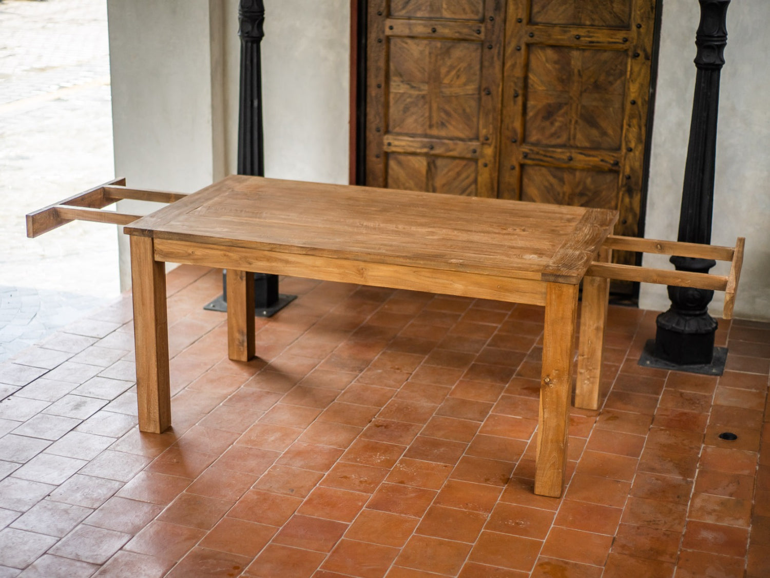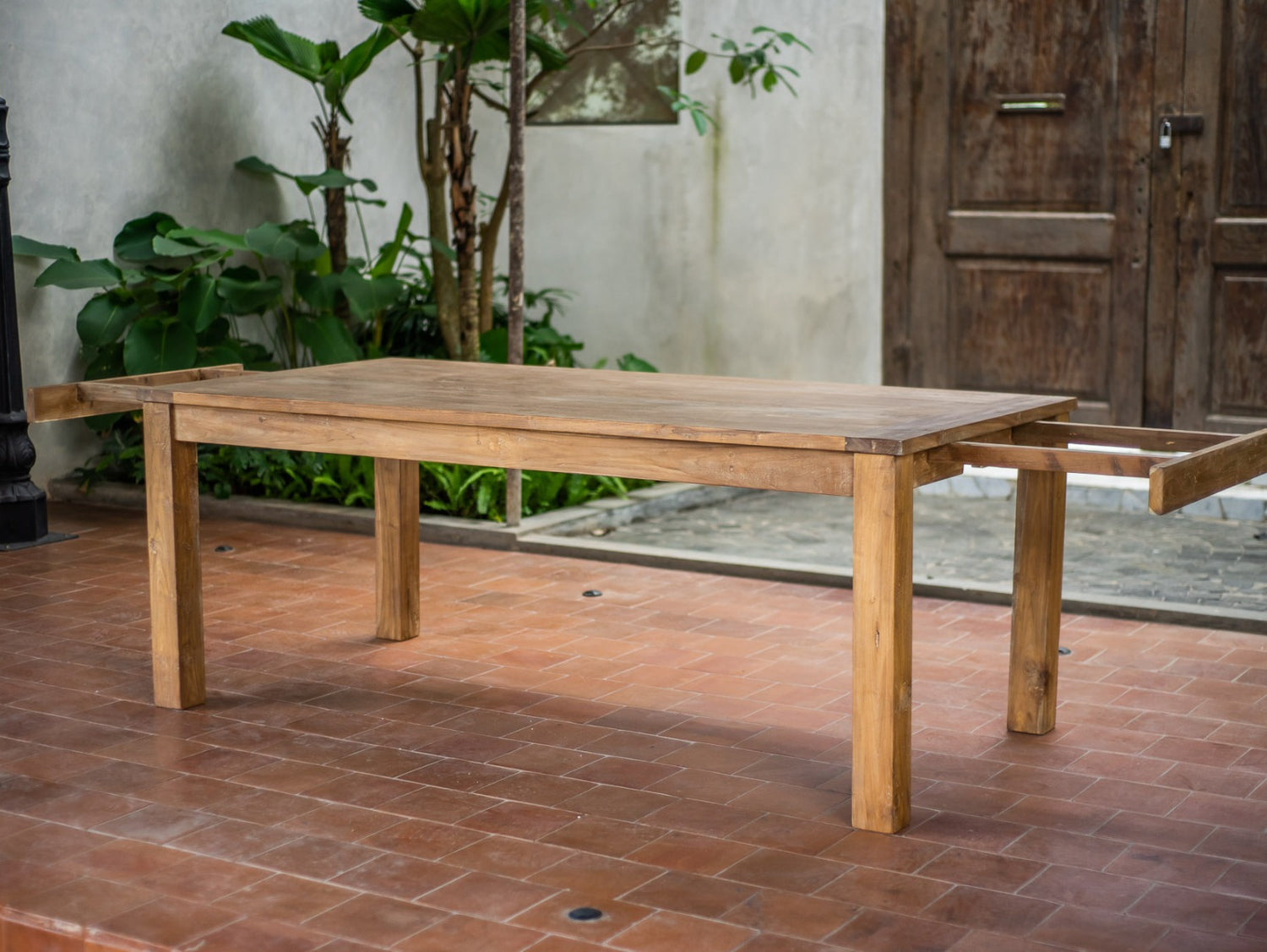 Stellen Sie sich einen Tisch vor, der sich mühelos an jede Situation anpasst – vom gemütlichen Familienessen bis zur großen Dinnerparty mit Freunden. Unser Ausziehtisch aus massivem Teakholz ist die perfekte, flexible Lösung für Ihr Esszimmer. Dank seines intelligenten Ausziehmechanismus verwandeln Sie den Tisch im Handumdrehen und schaffen Platz für all Ihre Gäste.