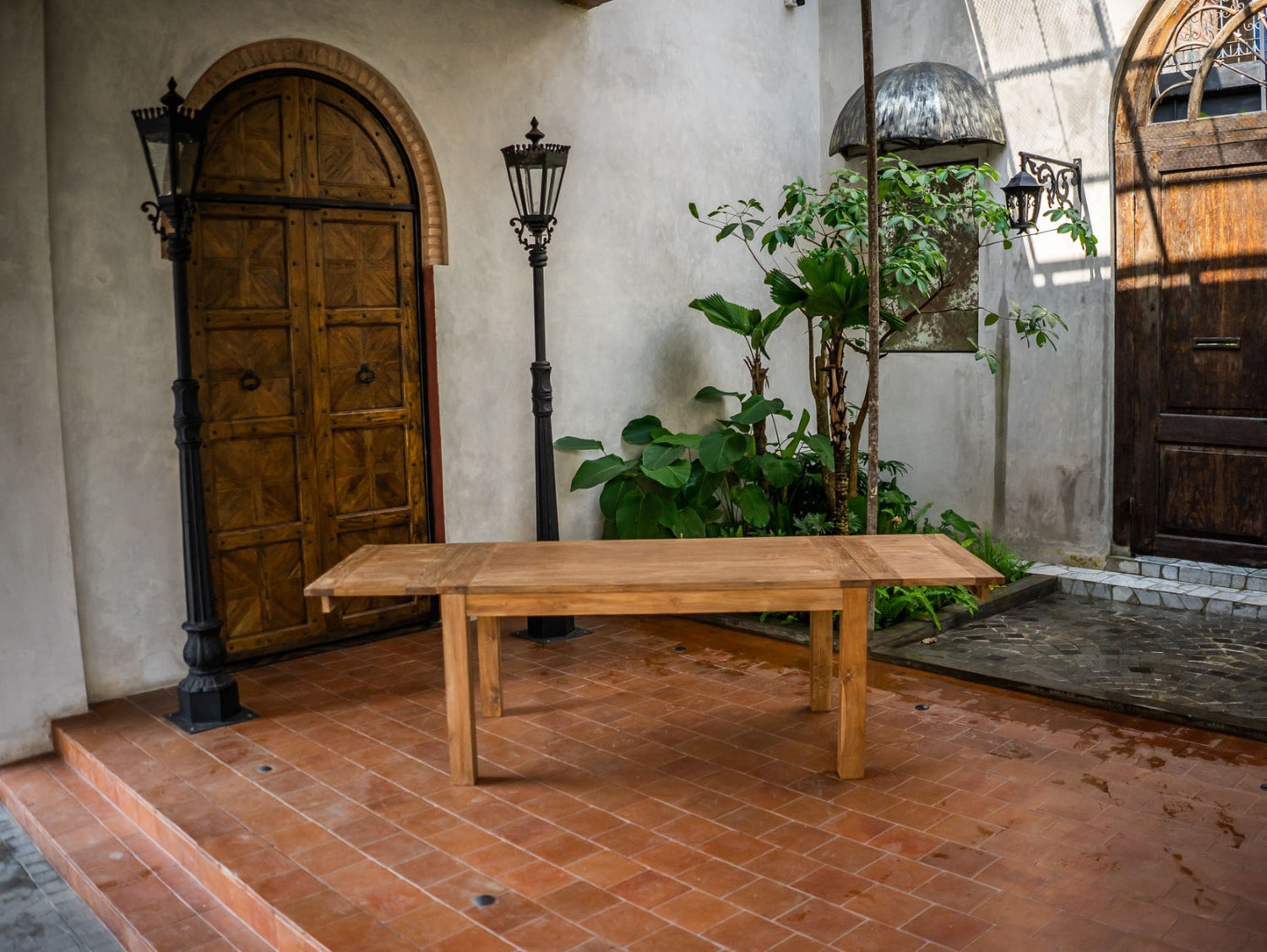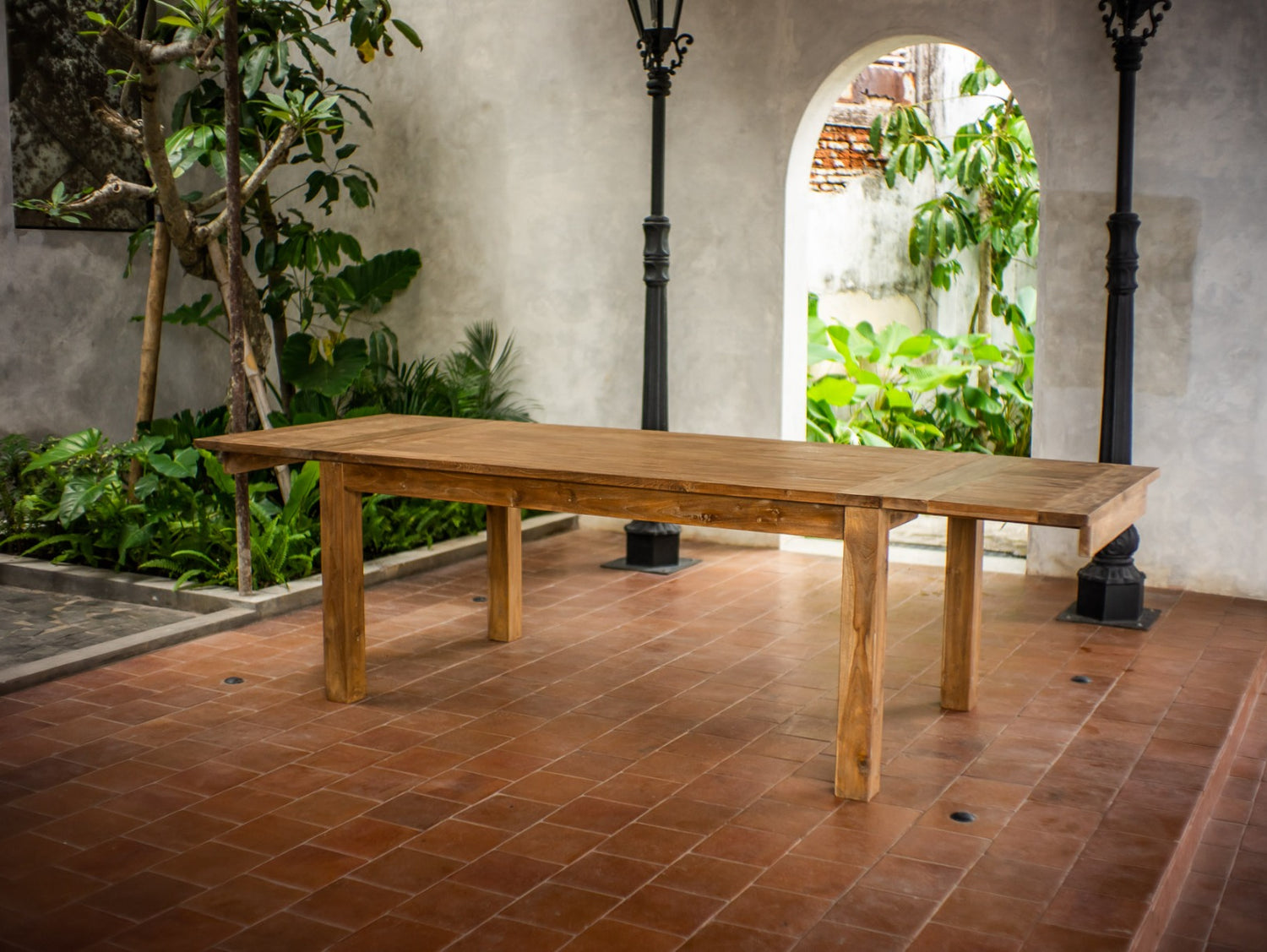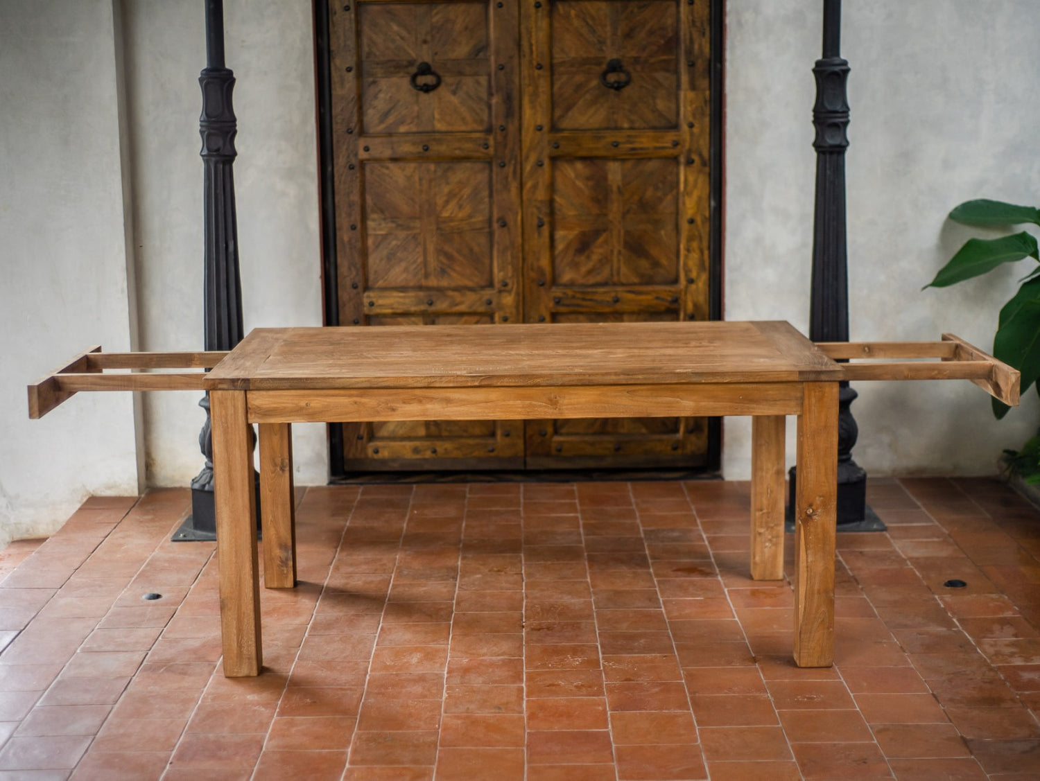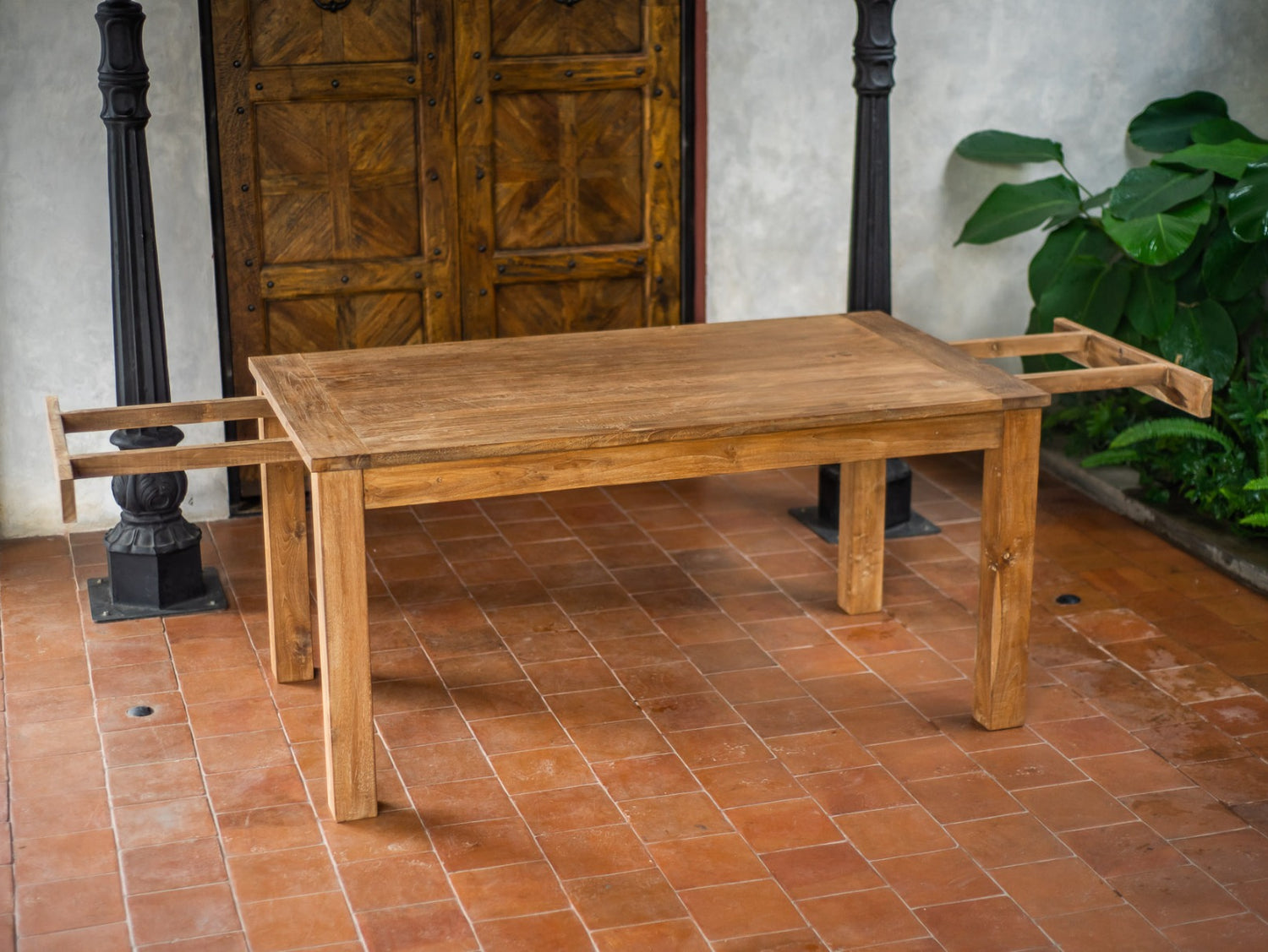 Stellen Sie sich einen Tisch vor, der sich mühelos an jede Situation anpasst – vom gemütlichen Familienessen bis zur großen Dinnerparty mit Freunden. Unser Ausziehtisch aus massivem Teakholz ist die perfekte, flexible Lösung für Ihr Esszimmer. Dank seines intelligenten Ausziehmechanismus verwandeln Sie den Tisch im Handumdrehen und schaffen Platz für all Ihre Gäste.