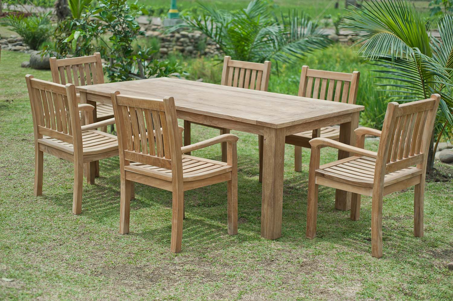 Teakholz ist pflegeleicht. Regelmäßiges Reinigen mit einem feuchten Tuch und einer milden oder grünen Seifenlösung hält das Holz in gutem Zustand. Bei Teakholz-Gartentischen empfehlen wir mindestens 1-2 Mal im Jahr eine gründliche Reinigung, um Ablagerungen wie Algen oder Moos vorzubeugen. Bei Tischen mit Schraubbeinen jährlich prüfen, ob alles fest sitzt.