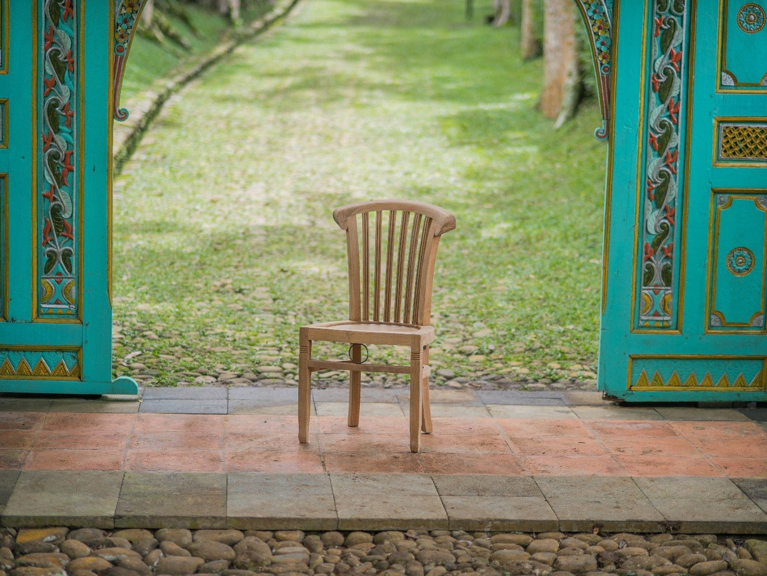 Der Teak Stuhl Endang überzeugt durch sein markantes Design und seine rustikale Ausstrahlung. Die Sitzfläche besteht aus einzelnen, passgenau zusammengefügten Leisten, die vom äußeren Rahmen begrenzt werden. Auffälliges Detail an den vorderen Stuhlbeinen sind die umlaufenden Einfräsungen. Sie verleihen dem Teak Stuhl einen unverwechselbaren Charakter.