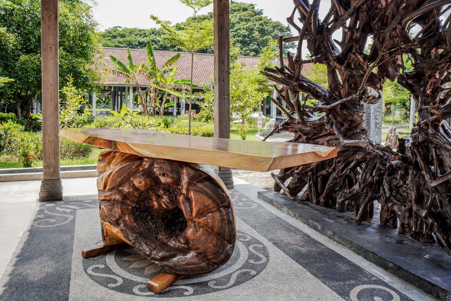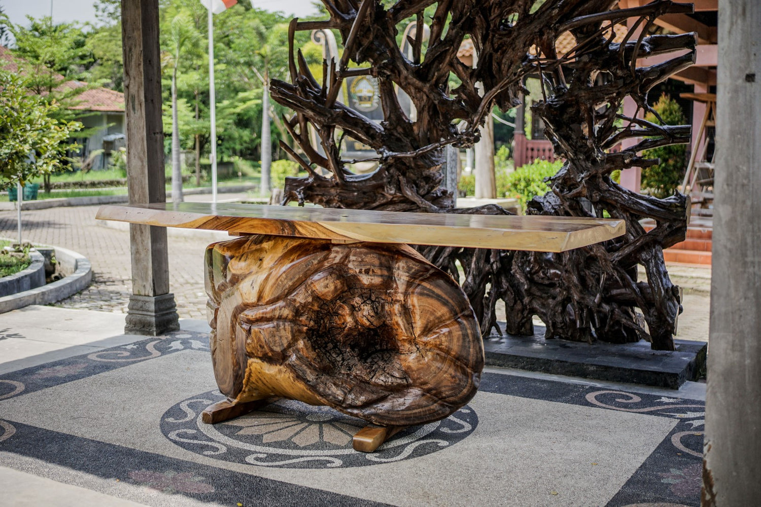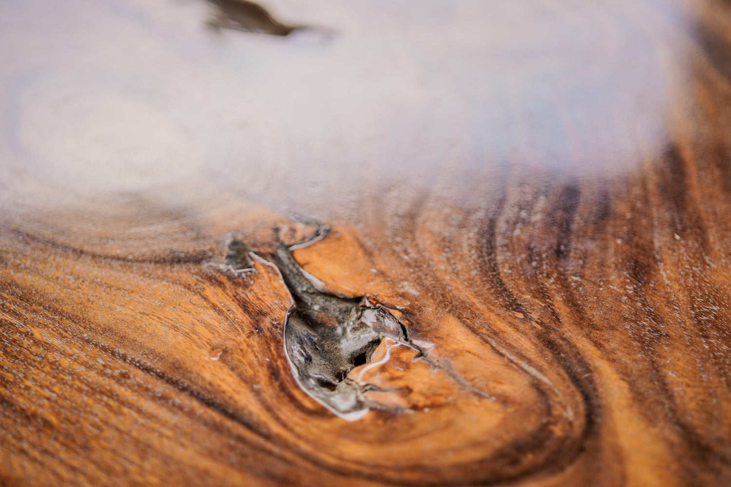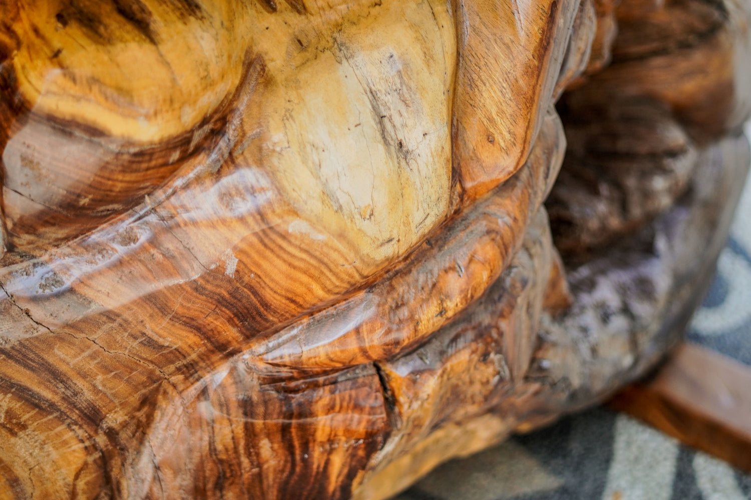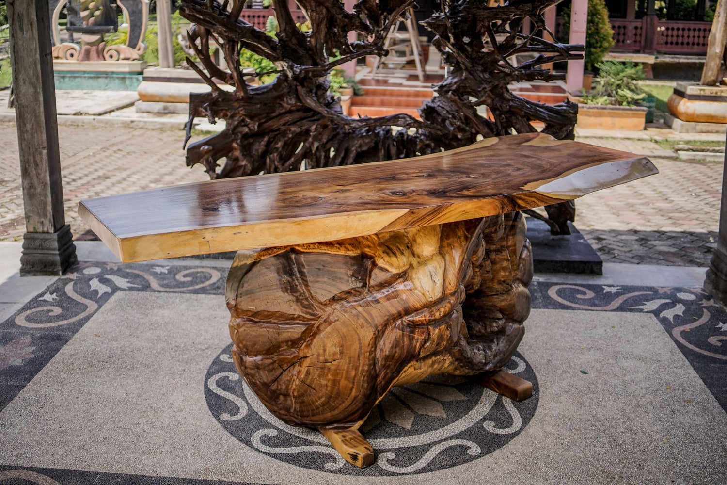 Der organisch geformte Baumstamm-Tisch vereint rustikale Ästhetik mit hochwertiger Verarbeitung: Die Tischbeine sind abnehmbar, was Transport und Montage erleichtert.