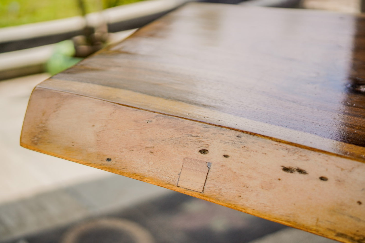 Der Suar Bartisch GIANT 300 cm ist ein wahrer Blickfang für exklusive Innenräume oder überdachte Außenbereiche. Gefertigt aus massivem Suarholz, präsentiert sich dieser Bartisch in seiner natürlichen Schönheit: jede Maserung, Rissstruktur und Farbvariation macht ihn einzigartig. Dank seiner imposanten Länge von 3,00 m bietet dieser Bartisch ausreichend Platz für gesellige Runden, Meetings oder stilvolle Inszenierungen in Ihrem Ambiente.