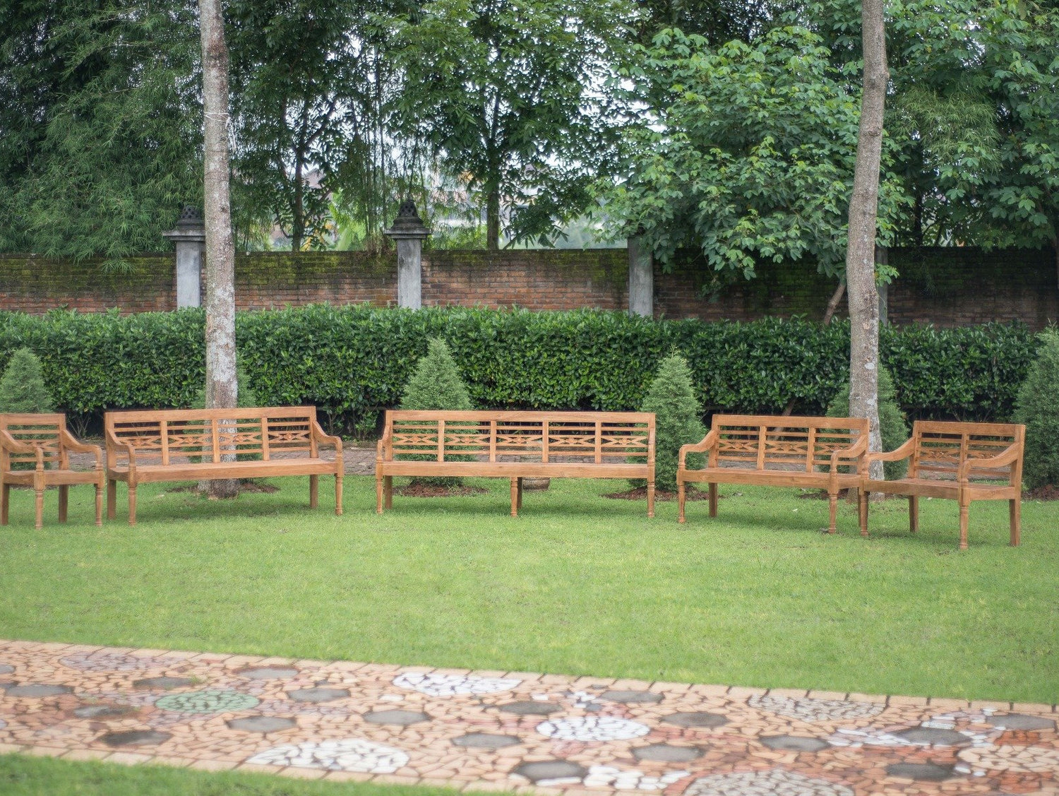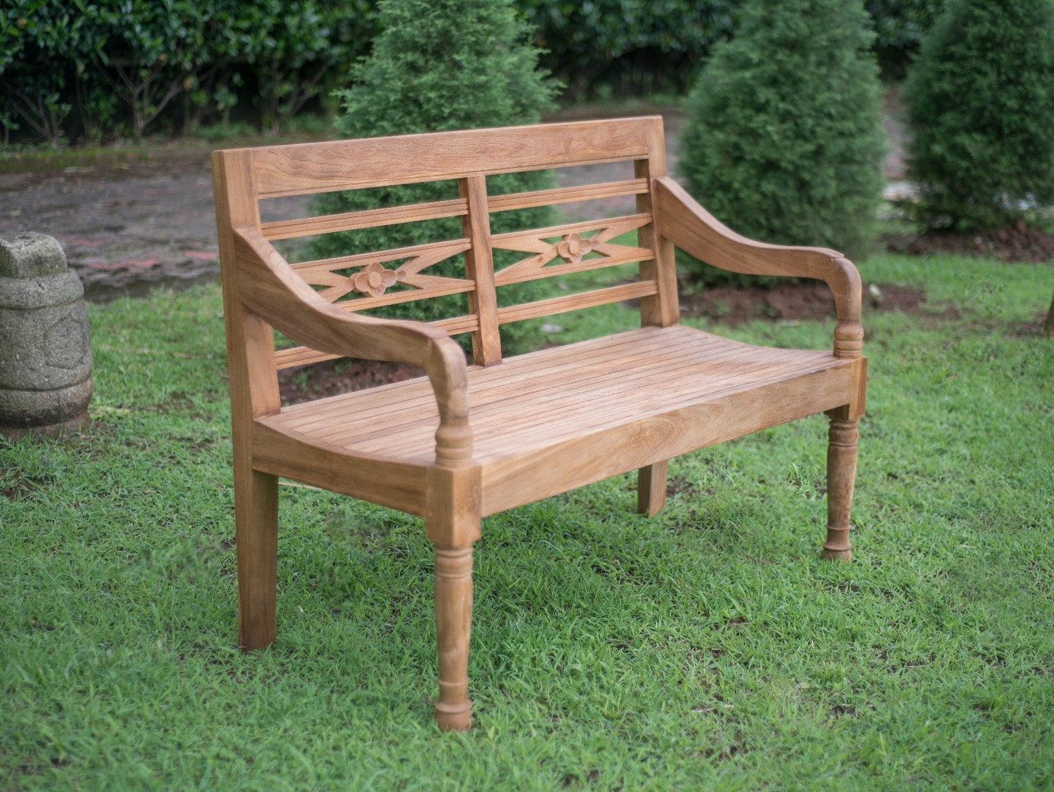 Mit dieser Bahnhofsbank aus massivem Teakholz zaubern Sie einen Hauch südostasiatisches Flair in den Garten oder auf die Terrasse. Als Designvorlage dienten Bänke, wie sie in Indonesien noch heute teilweise in Wartehallen und auf Bahnsteigen zu finden sind. Ein charakteristisches Merkmal dieser Bahnhofsbänke ist die kunstvoll geschnitzte Rückenlehne, deren Motive florale Muster oder geometrische Formen sind. Für die Herstellung dieses Schmuckstückes wurde recyceltes Teakholz verwendet, das einst für den Bau von Wohnunterkünften auf der indonesischen Insel Java eingesetzt wurde.