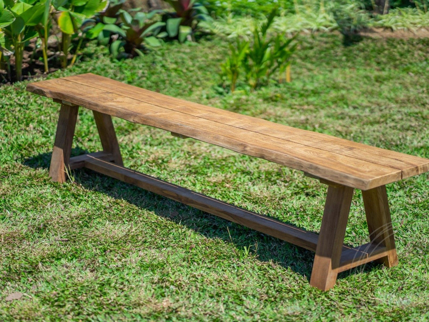 Gefertigt aus wetterfestem Teak, besticht die Bank durch ihre Langlebigkeit und die einzigartige Maserung, die jedes Stück zu einem Unikat macht.