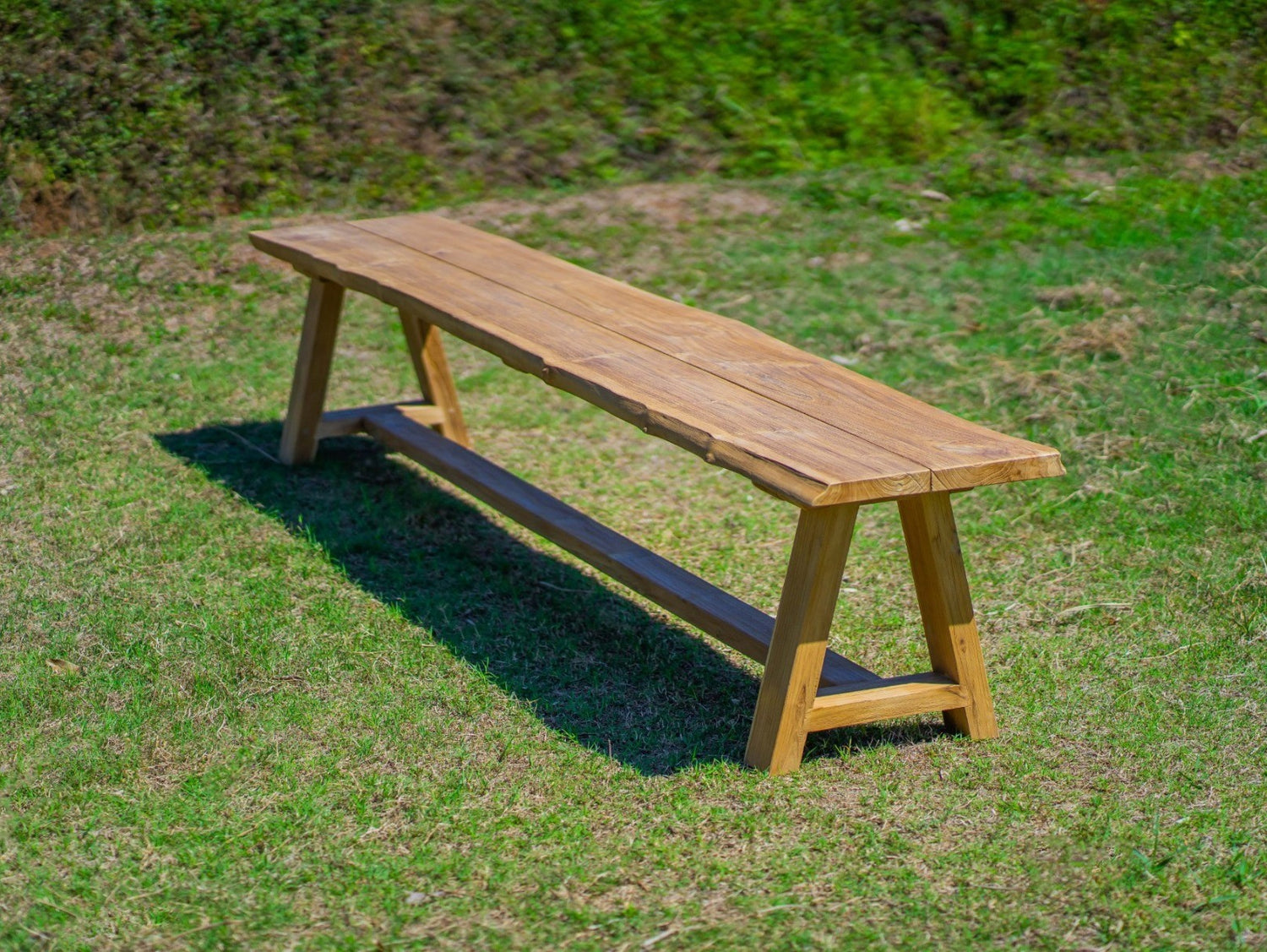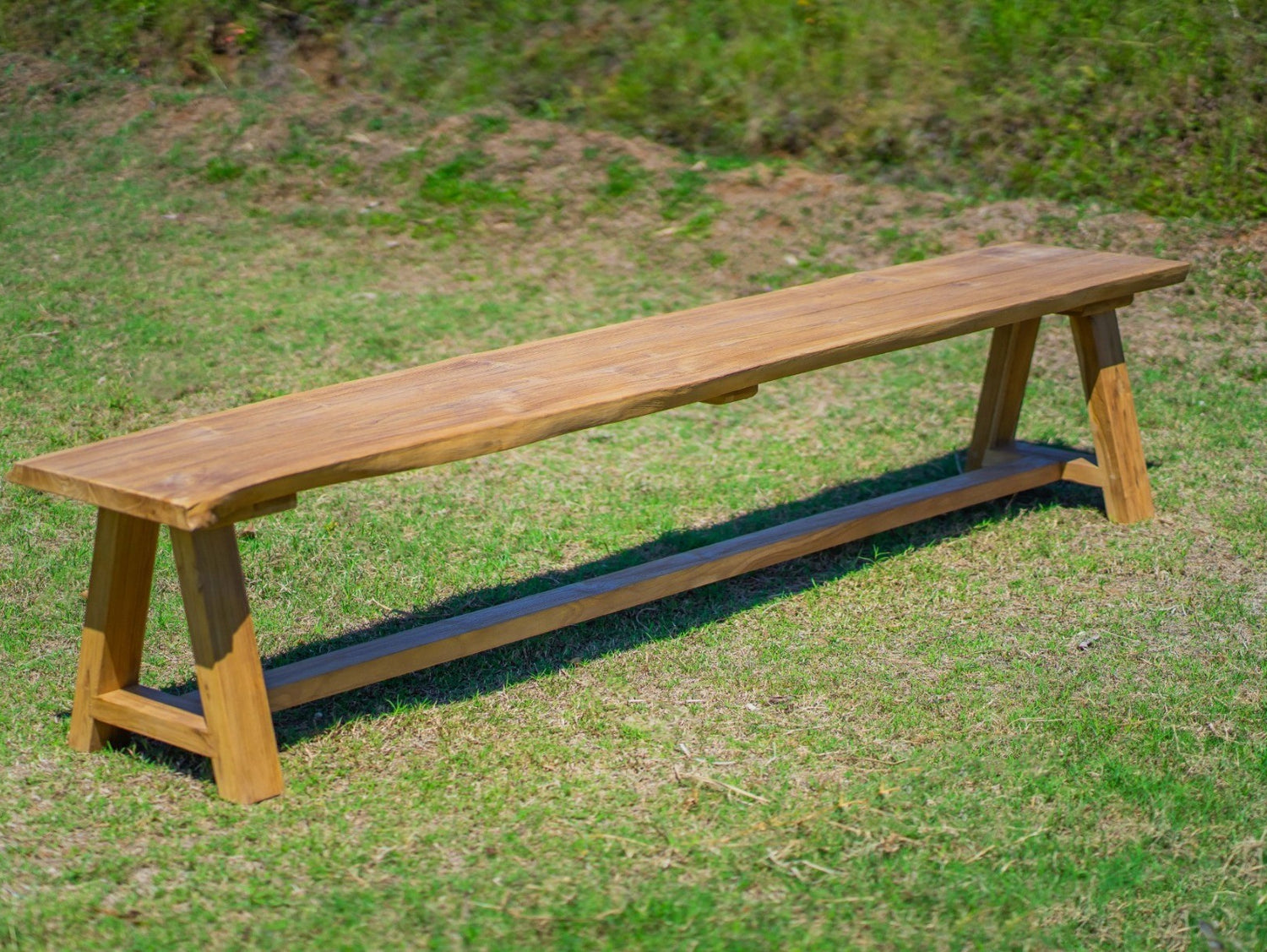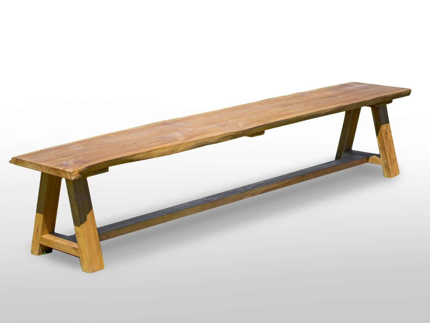 Teak Gartenbank Java 240 Diese großzügige Gartenbank aus massivem Teakholz besticht durch ihre zeitlose Eleganz und robuste Konstruktion. Mit einer Breite von 240 cm bietet sie komfortablen Platz für mehrere Personen und wird zum Mittelpunkt jeder Gartenanlage. Das hochwertige Teakholz zeichnet sich durch natürliche Ölgehalte aus, die es widerstandsfähig gegen Witterungseinflüsse und Schädlinge machen. Die Bank entwickelt im Laufe der Zeit eine charakteristische silbergraue Patina, die ihren natürlichen Charakter unterstreicht. Ideal für Terrassen, Parks und großzügige Außenbereiche – eine Investition in langlebige Qualität und zeitlose Gartengestaltung.