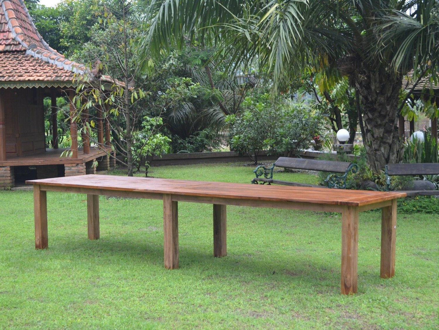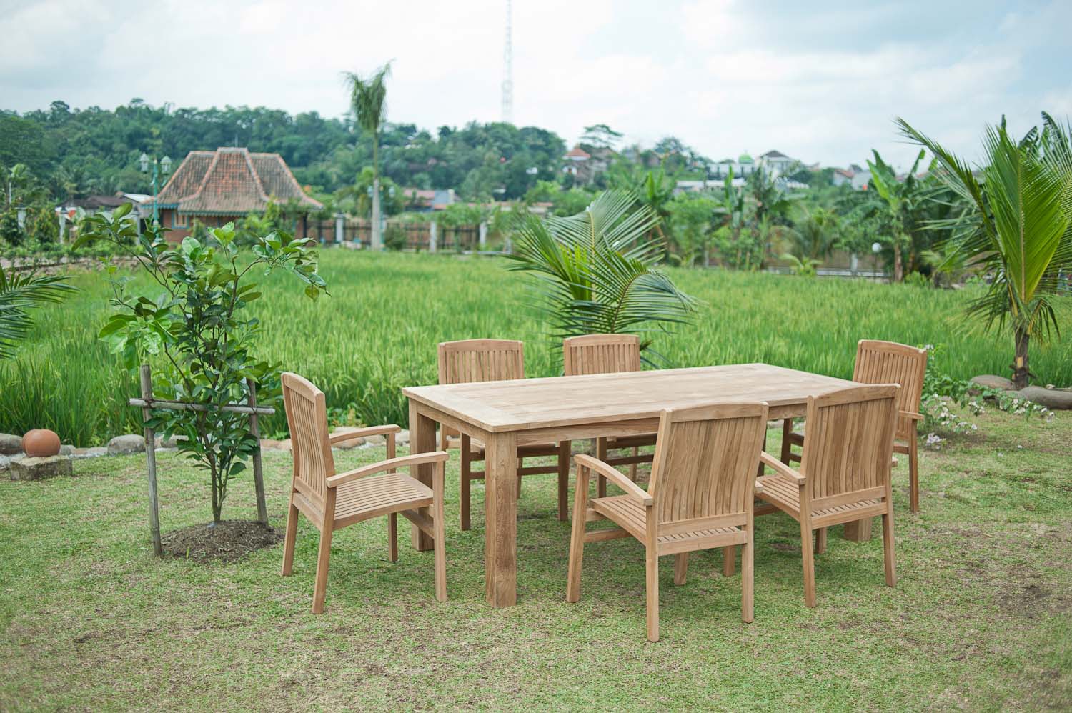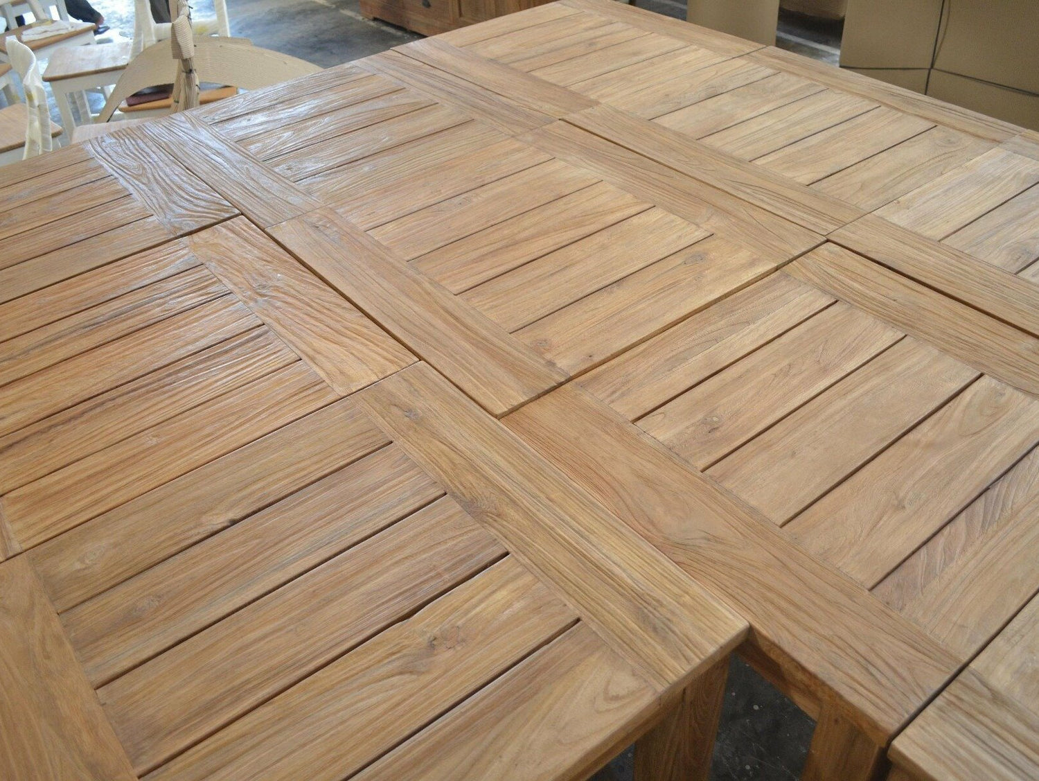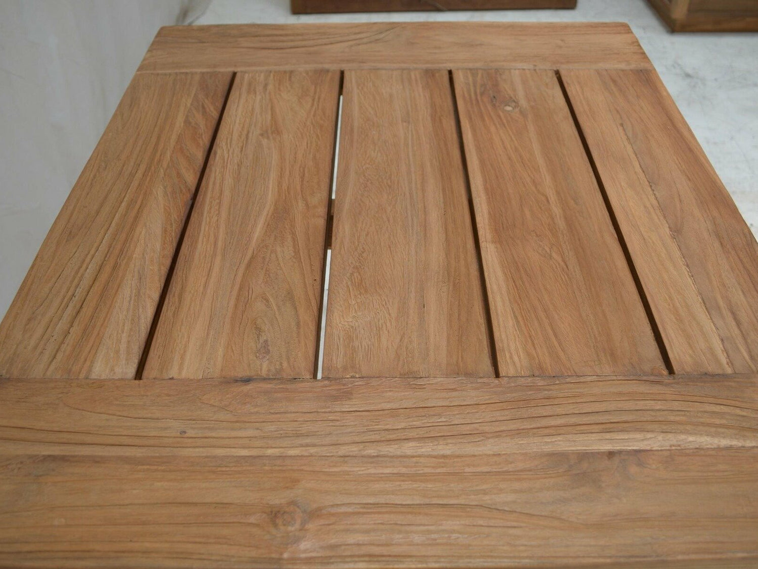 Der Teak Gartentisch Holland ist ein Klassiker in der Outdoormöbel-Kollektion. Er besticht mit einem zeitlosen Design und einer geraden Linienführung. Hergestellt wurde der Gartentisch aus altem Recyclingholz auf der indonesischen Insel Java. Dieses Holz trägt einen Hauch südostasiatisches Flair in den Garten und auf die Terrasse. Der Teak Tisch Holland ist in unterschiedlichen Größen erhältlich. Das Spektrum reicht vom quadratischen Modell mit den Abmessungen 80 x 80 cm bis zur langen Festtafel mit den Abmessungen 400 x 100 cm.
