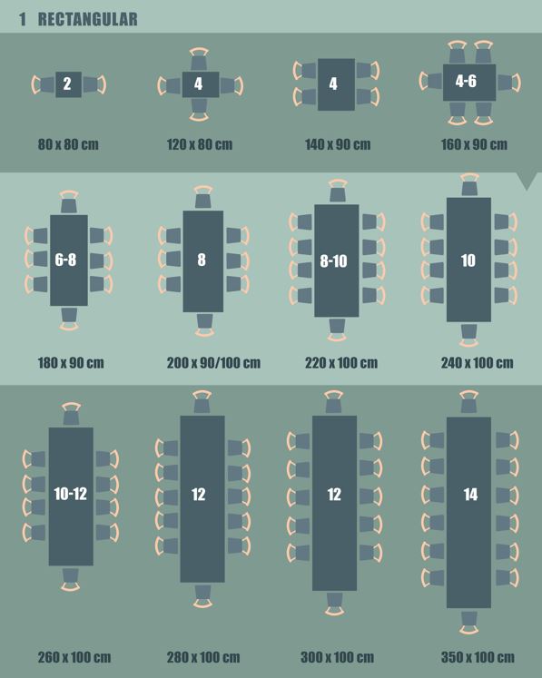 Personenzahl & Tischgrößen (Rechteckig)