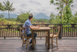 Die Tischplatte ruht auf vier (oder fünf*) Beinen mit einem quadratischen Grundriss. Sie wurde aus einzelnen Holzplanken zusammengesetzt, die an den Kopfenden mit einem quer liegenden Endstück verbunden wurden. Der Teak Tisch Rustikal ist in verschiedenen Größen erhältlich. Das Spektrum reicht vom kleinen quadratischen Modell mit den Maßen 80 x 80 cm bis zur großen Tafel mit den Maßem 400 x 100 cm. Gefertigt wurde der Esstisch auf der indonesischen Insel Java. Die Herstellung von Möbelstücken aus Teakholz hat in Südostasien eine jahrhundertelange Tradition.