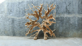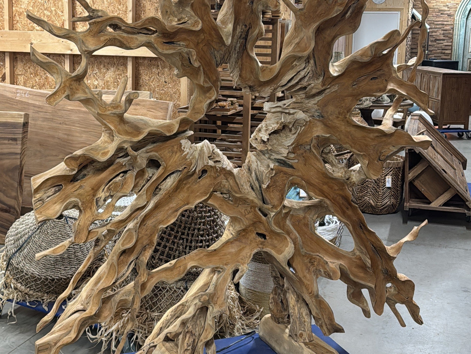 Bringen Sie ein außergewöhnliches Stück Natur in Ihr Zuhause. Dieser imposante Raumteiler aus echter Teakwurzel (180×200 cm) ist ein handgefertigtes Unikat und zieht sofort alle Blicke auf sich. Jede Wurzelstruktur ist einzigartig – organisch, kraftvoll und vollständig natürlich geformt.