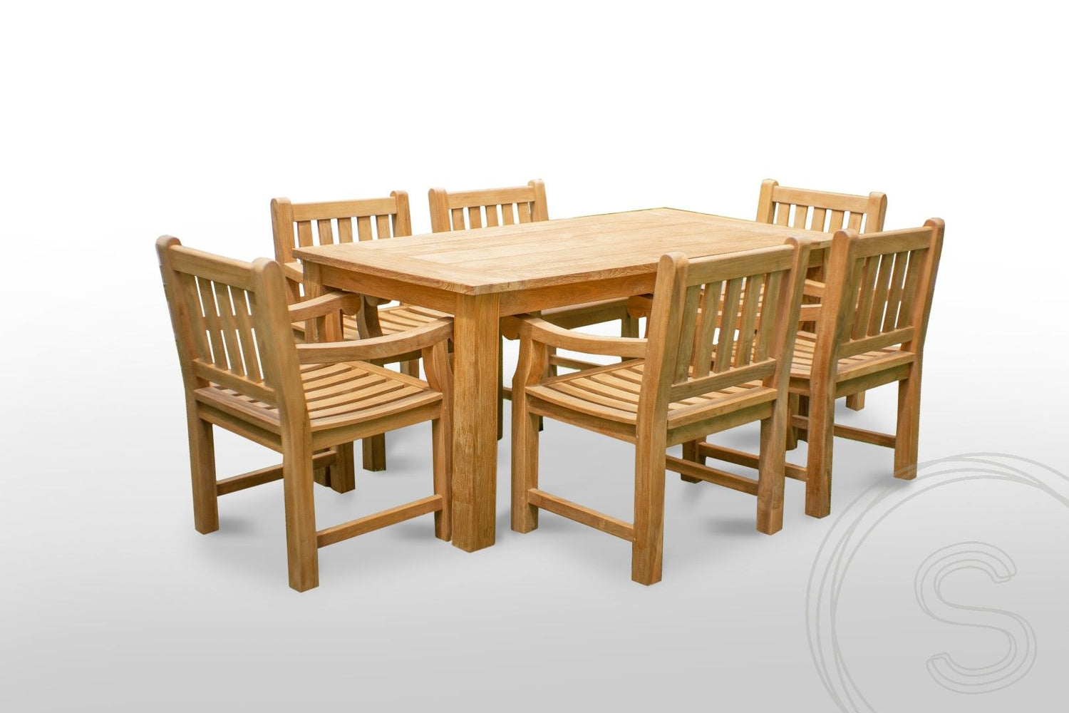 Teakholz Gartentisch 180 x 90 + 6 Gartenstühle Elephant