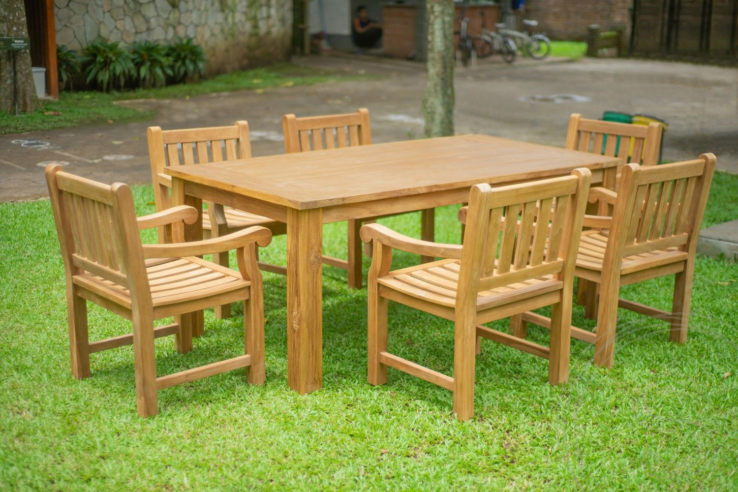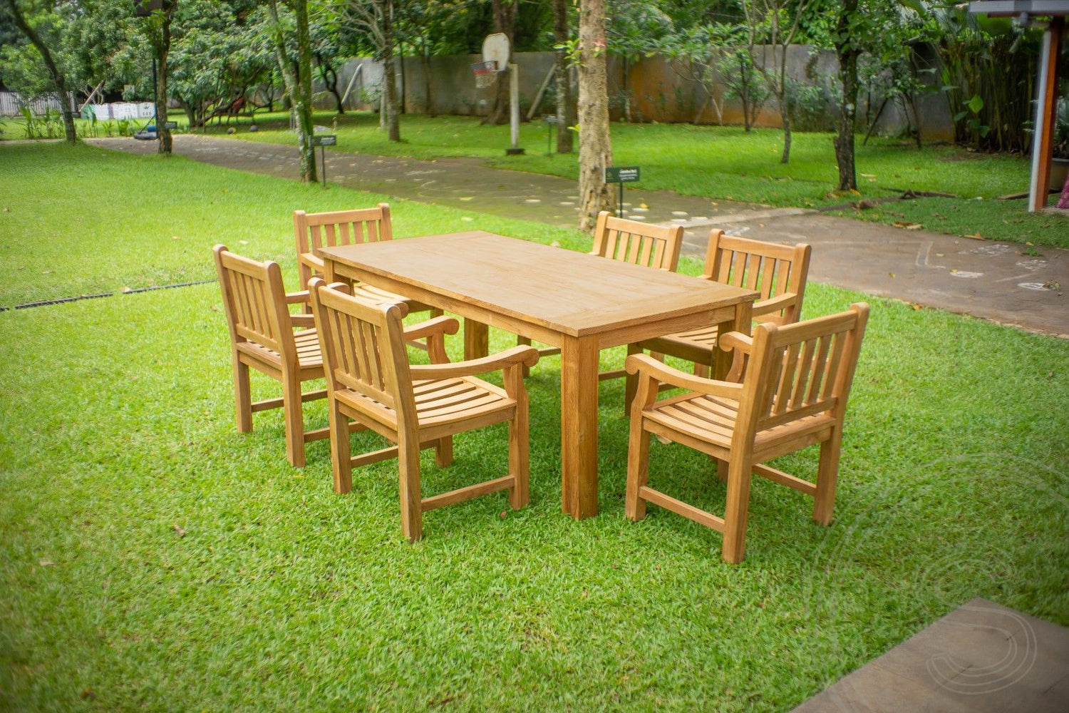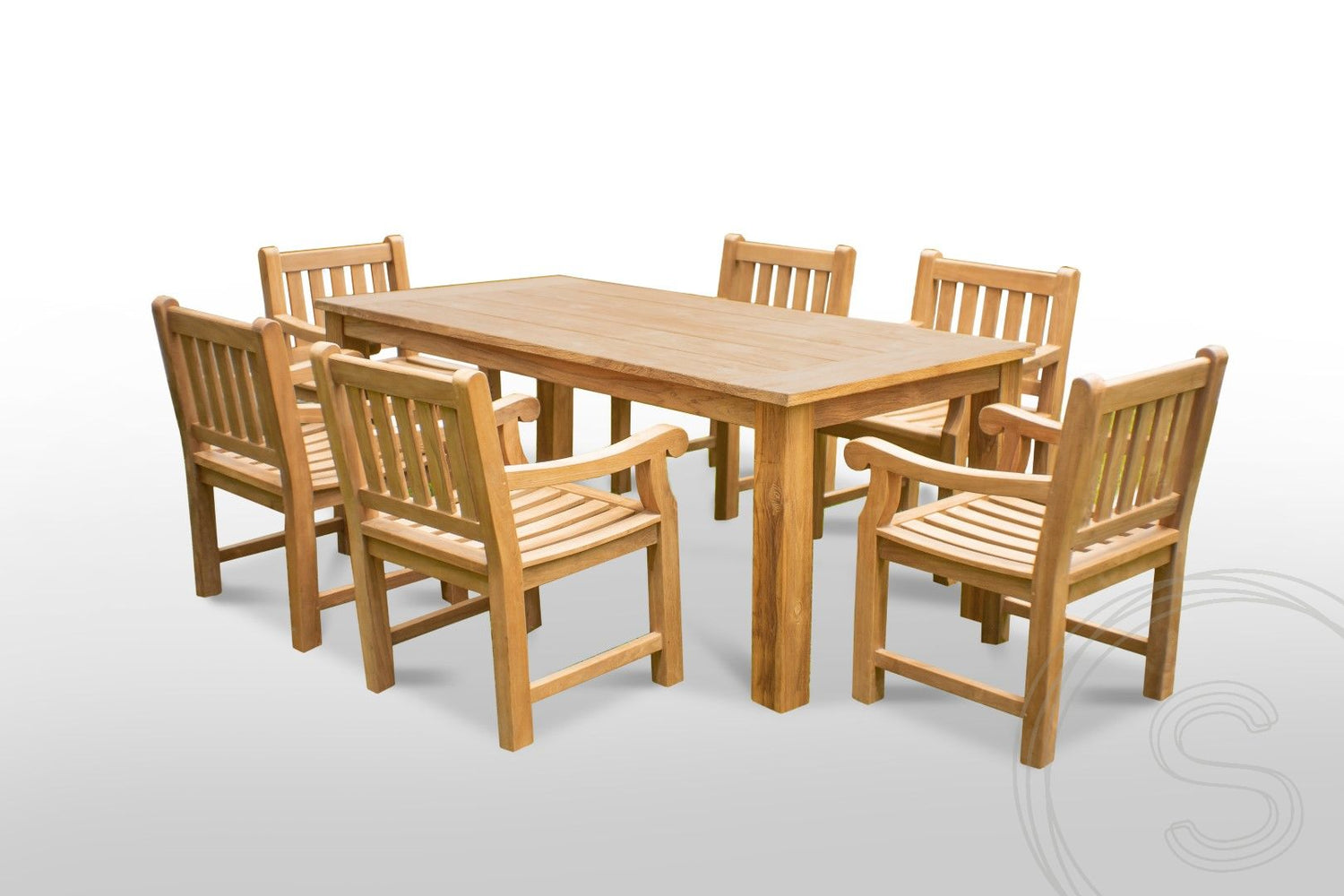 Teakholz Gartentisch 200 x 90 + 6 Gartenstühle Elephant