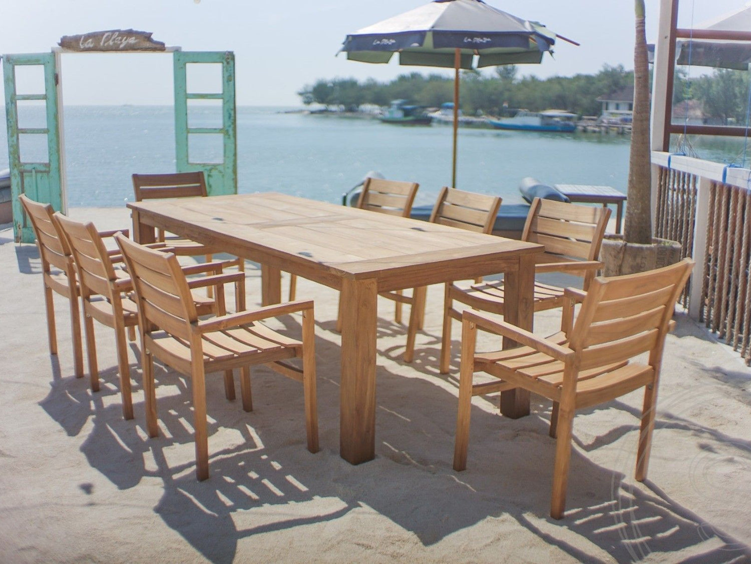 Dieser rechteckige Tisch aus massivem Teakholz vereint natürliche Schönheit mit hochwertiger Verarbeitung und ist ideal für den Outdoor-Bereich oder überdachte Flächen geeignet. Das wetterbeständige Teakholz überzeugt durch seine warme Farbgebung, feine Maserung und hohe Langlebigkeit. Mit seinem schlichten, zeitlosen Design fügt sich der Tisch harmonisch in verschiedene Einrichtungsstile ein – perfekt für gemütliche Runden im Garten, auf der Terrasse oder im Wintergarten.