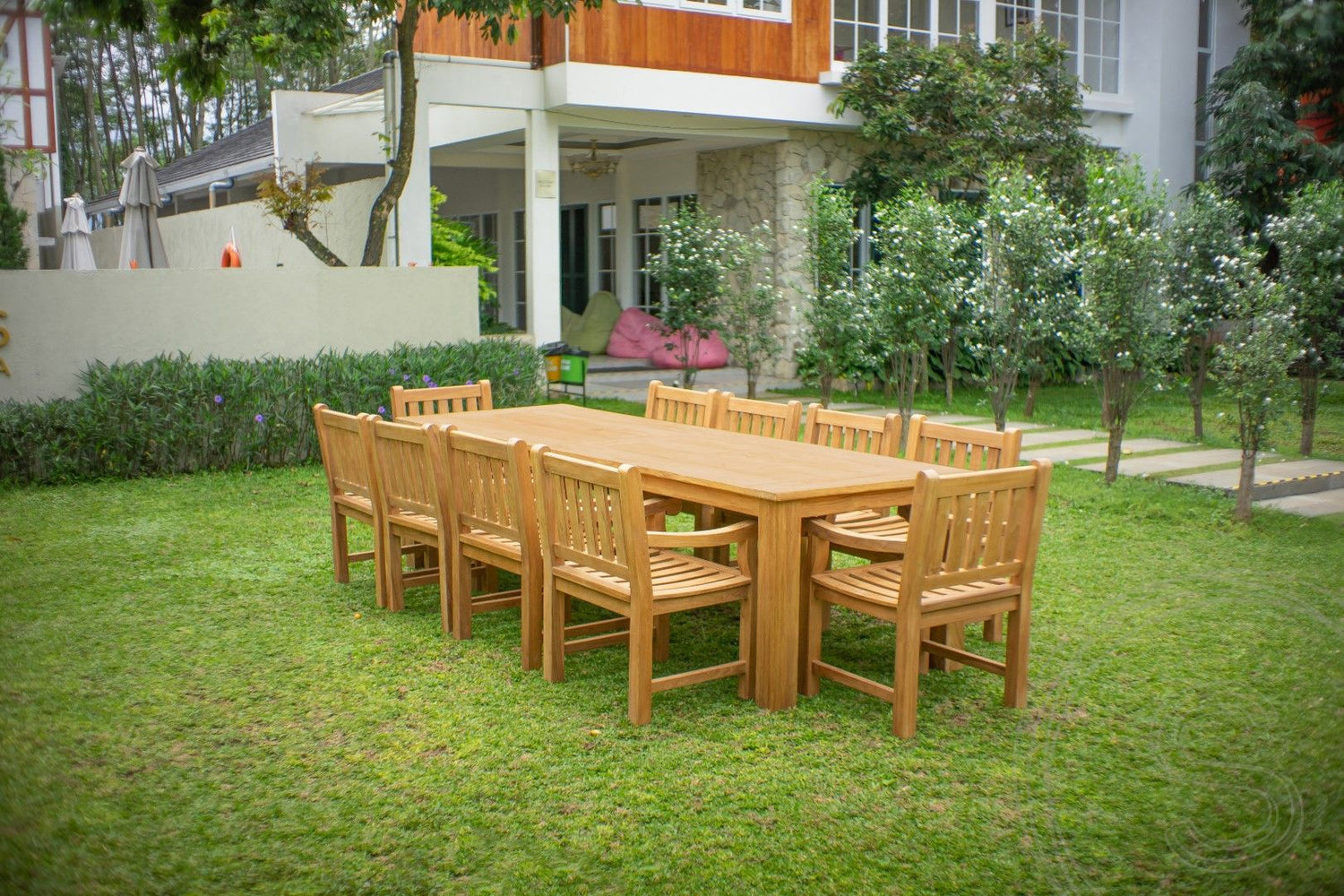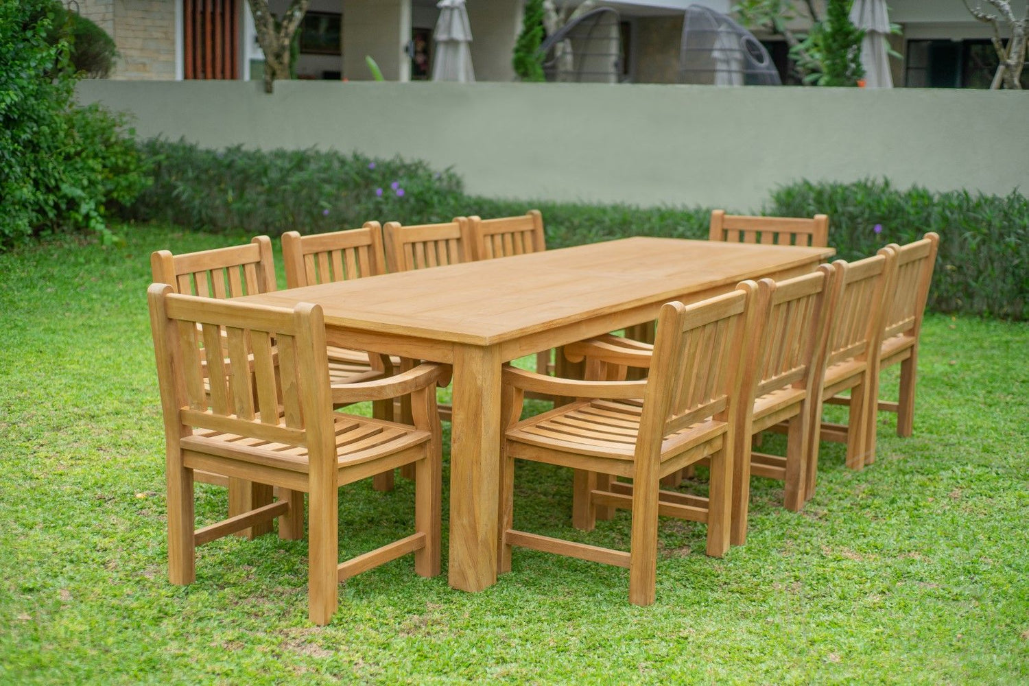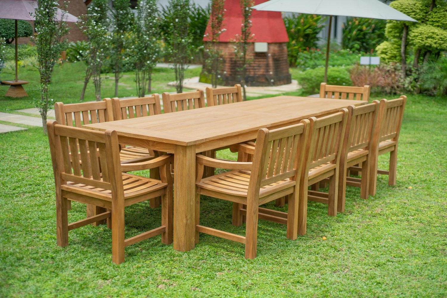 Teakholz Gartentisch 300 x 100 + 10 Gartenstühle Elephant
