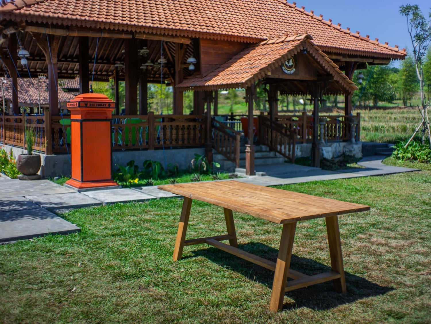 Diese Teakholz-Tisch mit einer Länge von 180 cm verbindet rustikalen Charakter mit einer modernen, organischen Form. Ihr warmes Holz und die natürliche Struktur sorgen für eine harmonische Ausstrahlung, die sich perfekt in jedes Ambiente einfügt. Ob auf der Terrasse, unter einem Dach oder im Garten – diese Tisch schafft einen Ort zum Entspannen und Wohlfühlen.