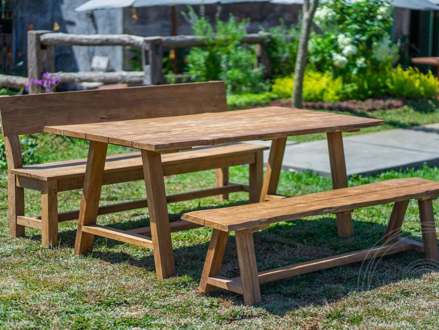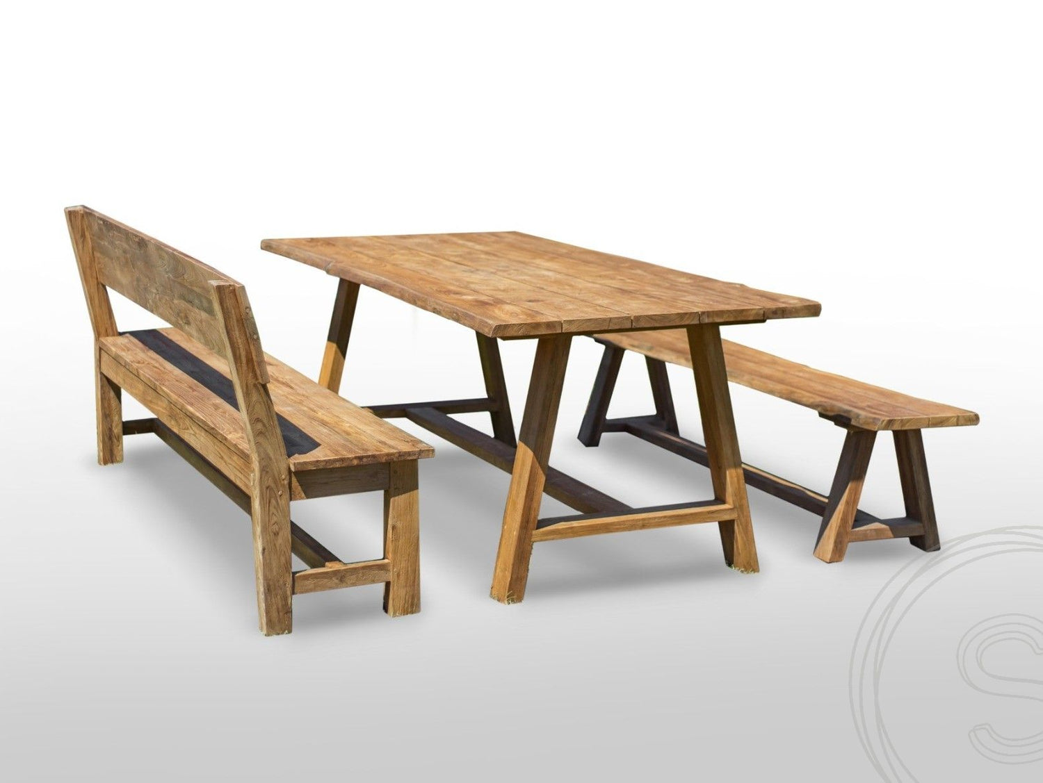 Teakholz Gartentisch Java 220 x 100 + 2 Teakholz Gartenbänke Java 220